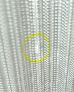 私が「これはおかしいかも?」と感じたのは、使い始めて約4年後。レースのカーテンに小さな穴が開いているのを発見!